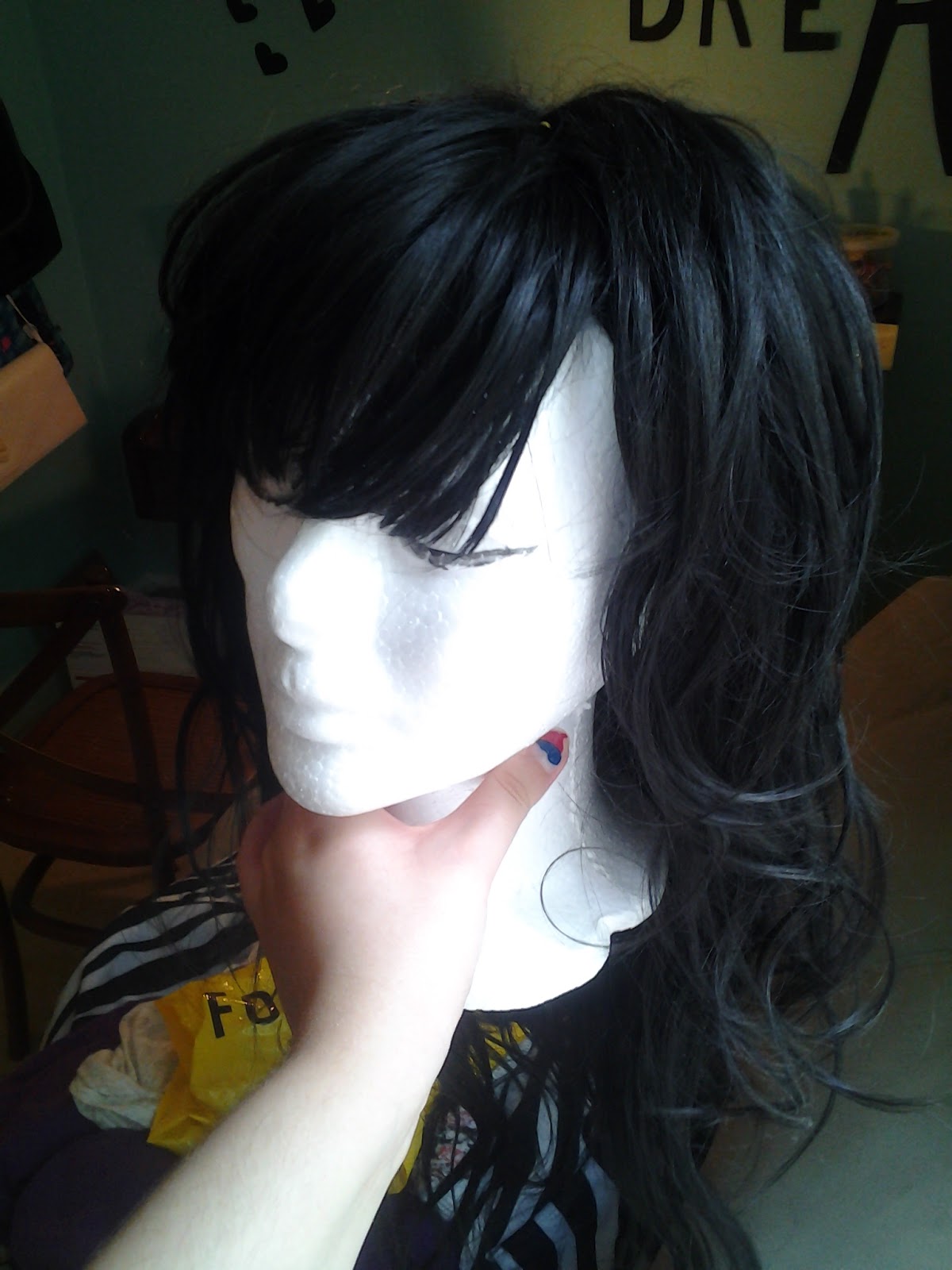At first I got kind of worried because a lot of hair was falling off the wig, but I continued. It took me around 2 hours to do that.
